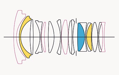Lens construction: 17 elements in 14 groups