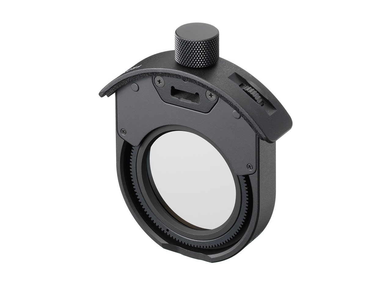 • The wheel on the drop in filter holder allows the photographer to turn the CPL filter inside the lens.