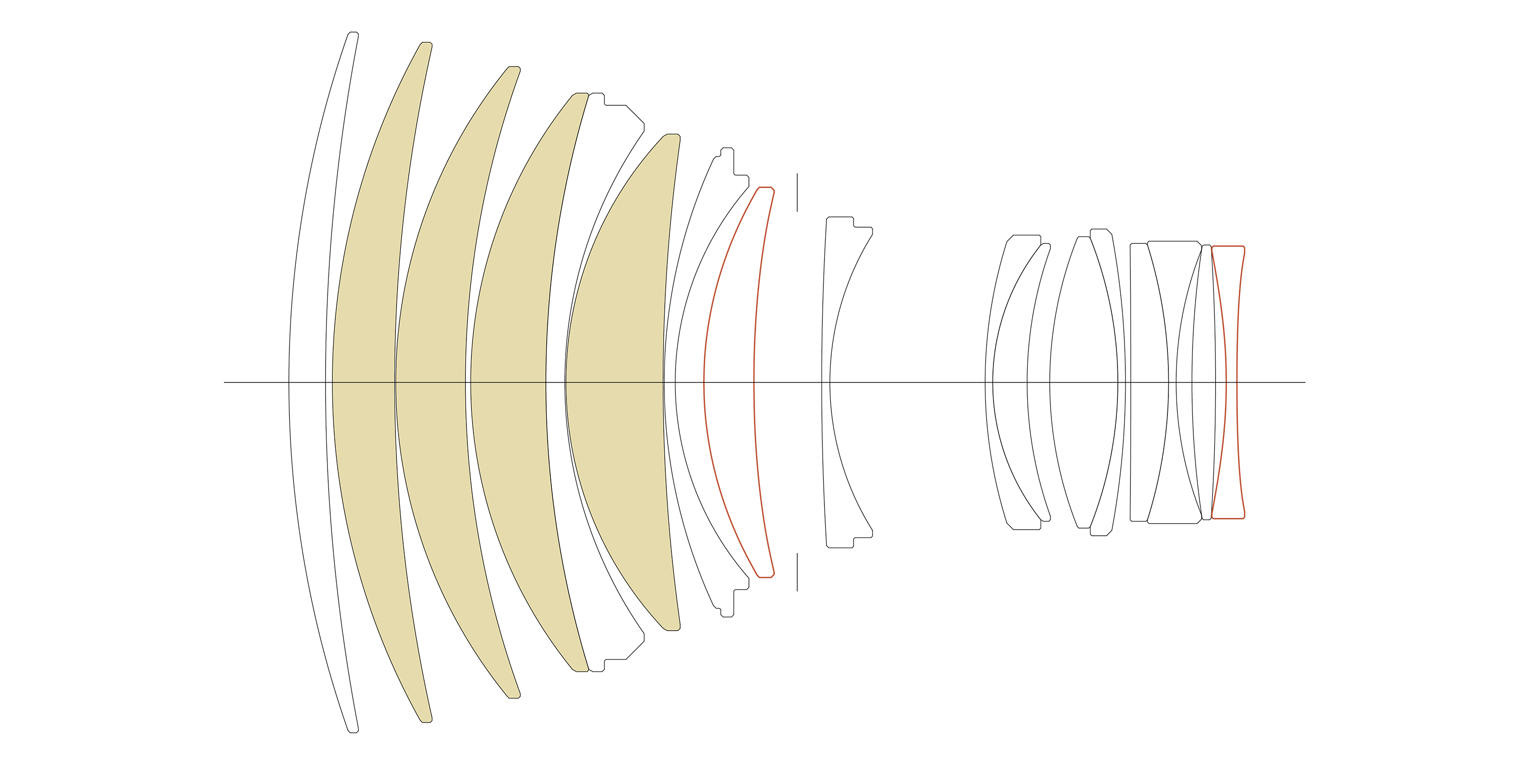 Lensconstructie 17 elements in 13 groups (4 FLD and 2 aspherical lens elements)