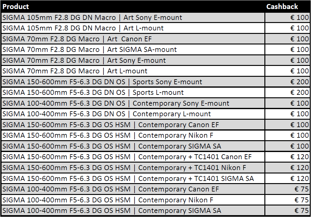 Profiteer tijdelijk van een aantrekkelijke cashback op de onderstaande producten in Sony E-mount en L-mount: